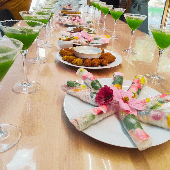 • Rouleaux de printemps fleuris et sauce miel-cacahuète